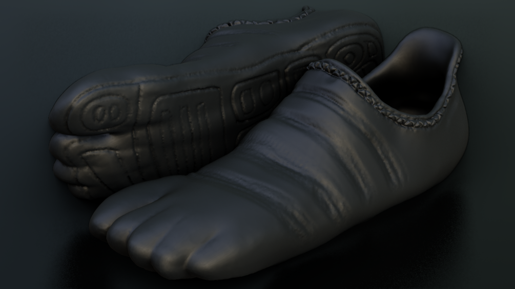 A pair of poseable split gym shoes use as a reference model.